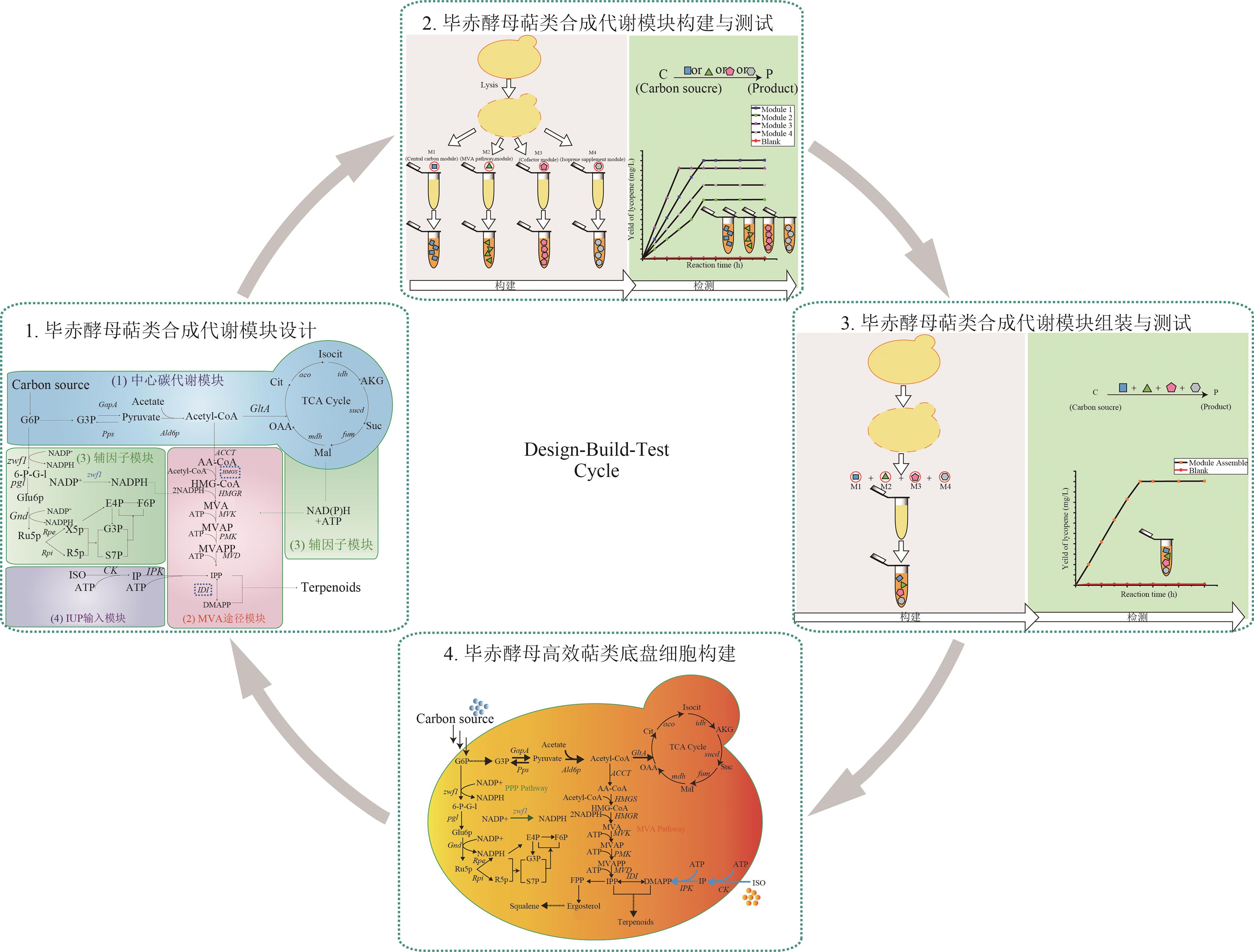 | 图4 酵母萜类合成模块设计及代谢途径快速原型 |