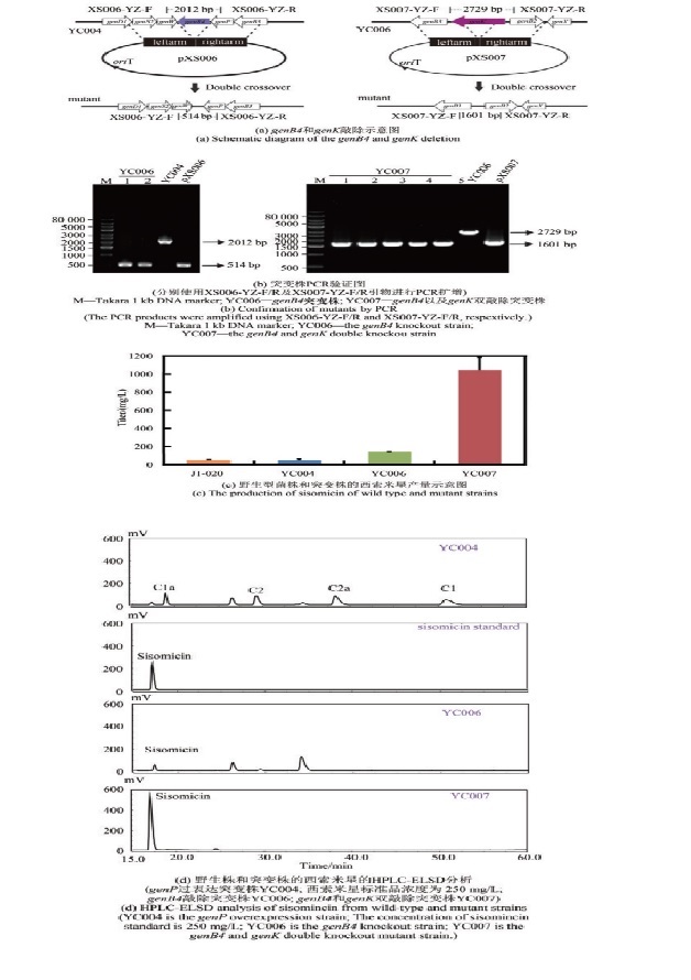 | Fig. 5 Construction and HPLC-ELSD analysis of genB4 and genK knockout strain |