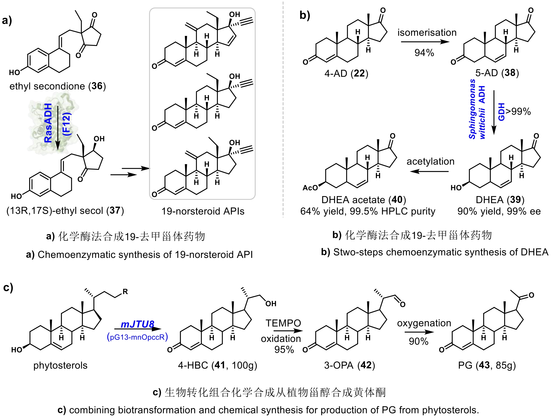 | 图7 还原酶参与的甾体药物化学酶法合成 |